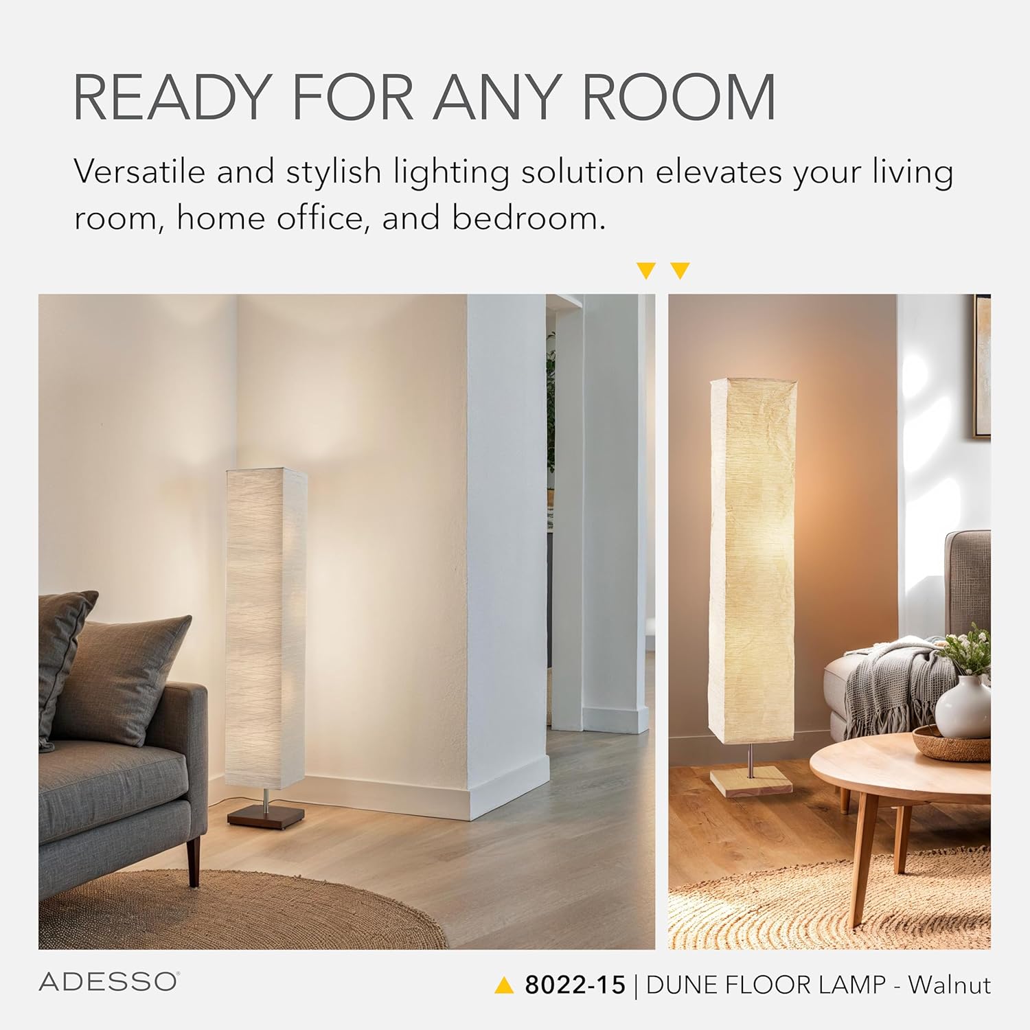 - Dimmable Mood Lighting - Create a warm, cozy atmosphere with Adesso's contemporary floor lamps. The on/off foot switch lets you choose between lighting 1, 2, or all 3 bulbs making this dimmable floor lamp adaptable to all your needs.