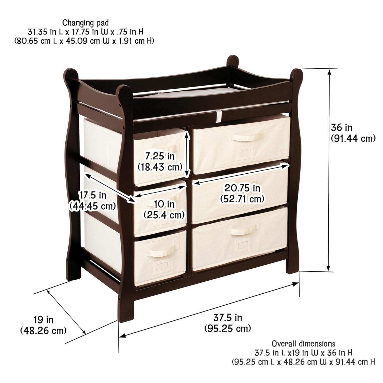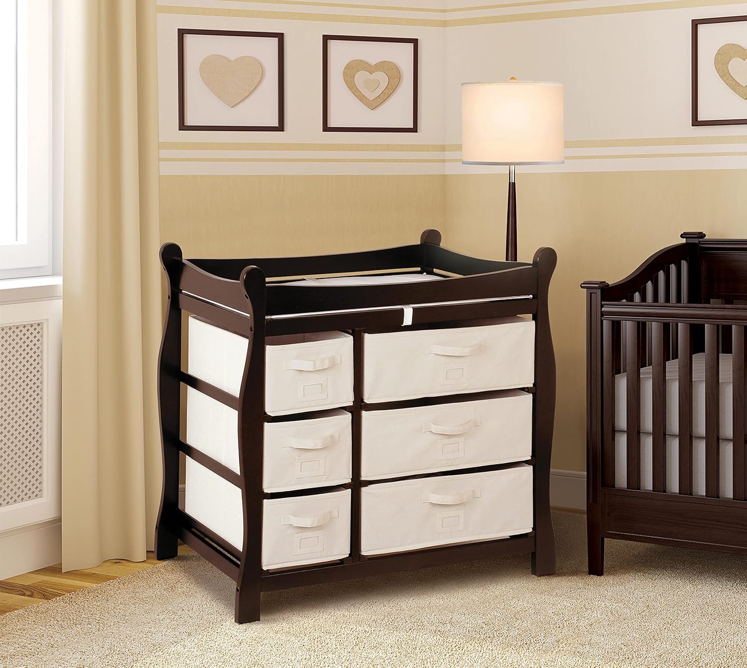 Badger Basket Sleigh Style Baby Changing Table - Diaper Station with 6 Removable Storage Baskets, Safety Rails, Pad, and Belt - Nursery Organizer - Espresso