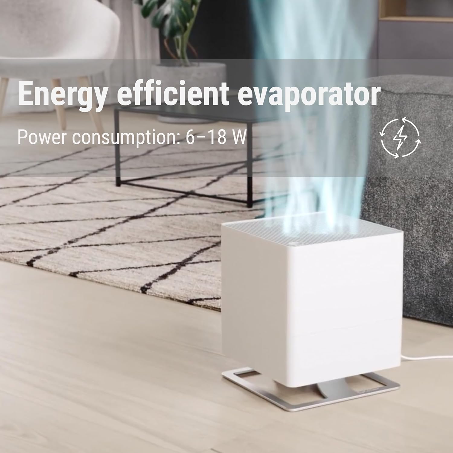 Stadler Form humidifier Oskar, Energy-Saving Humidifier for Rooms up to 540 Square Feet, Evaporator with Automatic Switch-Off, Dimmable LEDs, Very Quiet, White, medium