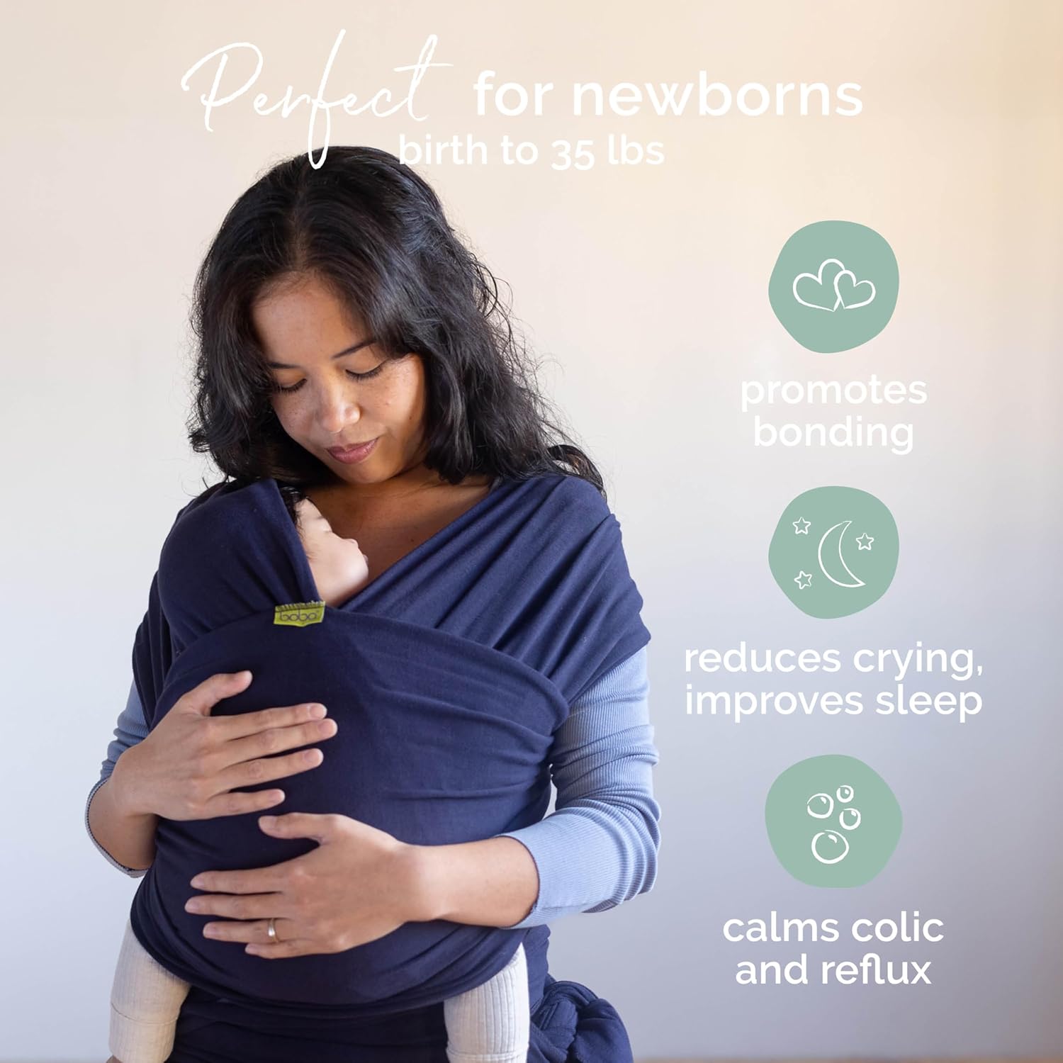 Boba Baby Wrap Carrier – Original Baby Sling Carrier for Newborns (7–35 lbs), Soft, Secure, Hands-Free & Ergonomic, Ideal for Comfortable Bonding, New Parents (Navy Blue)