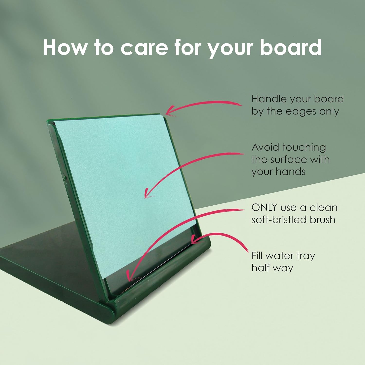Mini Buddha Board Art Set: Water Drawing Writing Board w/ Water Brush for Mindfulness & Meditation – Inkless Zen Based Drawing Board - Painting & Art Supplies – Ideal Relaxation Gifts (5” x 5”, Green)