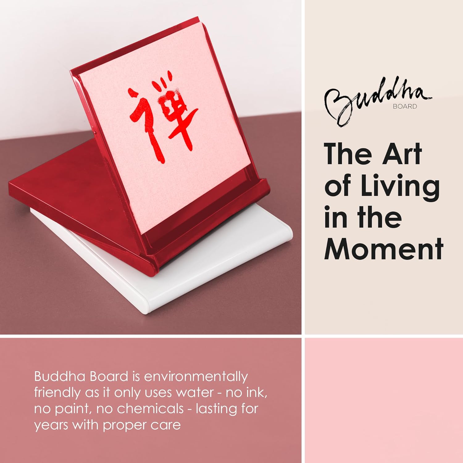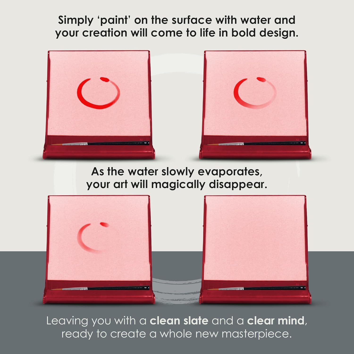 Mini Buddha Board Art Set: Water Drawing Writing Board w/ Mini Water Brush for Mindfulness & Meditation – Zen Based Drawing Board - Painting & Art Supplies – Ideal Relaxation Gifts (5” x 5”, Red)