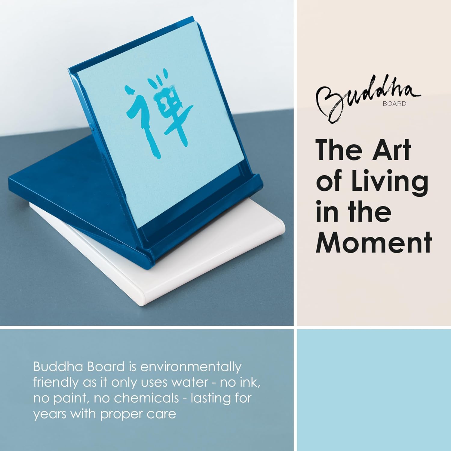 - UNCOVER YOUR TRUTH: The Mini Buddha Board is inspired by the Zen idea of living in the moment. This water board painting set uses only water plus our drawing and writing board as you create beautiful works of art that fade away as the water dries. Using a Buddha water board kit will help you achieve mindfulness. The mind is everything; what you think you become.