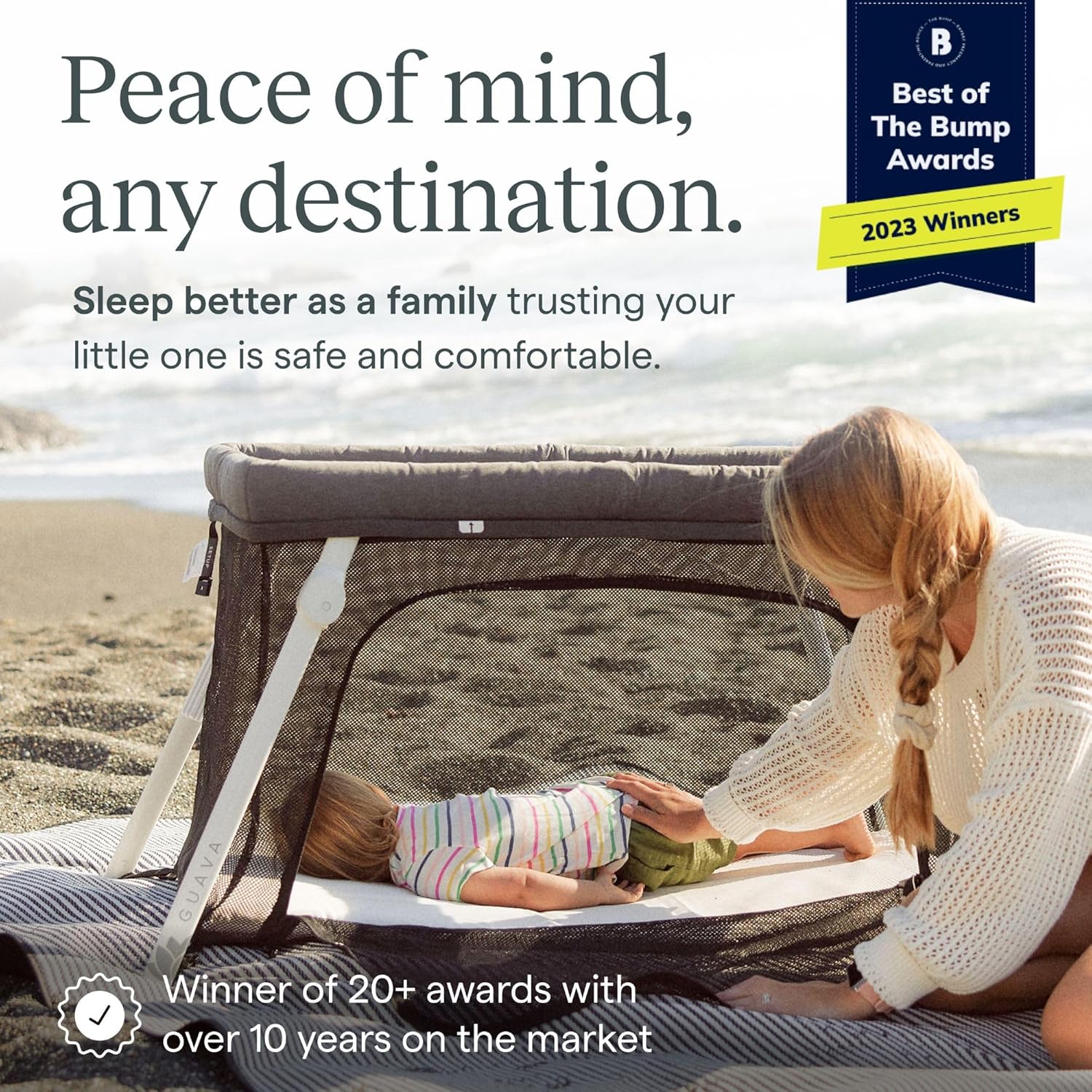 Guava Family Travel Crib includes Lightweight Backpack Design | Certified Baby Safe Portable Crib | Folding Play Yard, Comfy Mattress for Babies, Toddlers | Compact Baby Travel Bed
