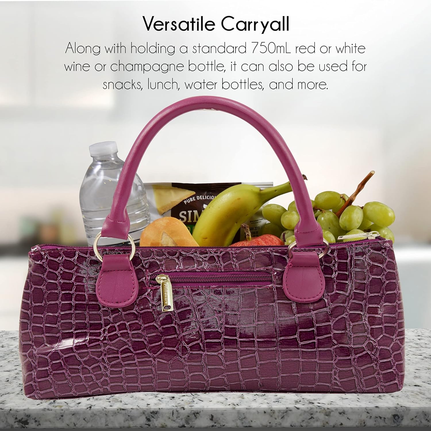- VERSATILE CARRYALL – Along with holding a standard 750 ml red or white wine or champagne bottle, it can also be used for snacks, lunch, water bottles, and more.