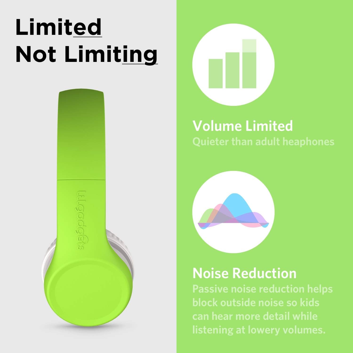 LilGadgets Connect+ Wired Kids Headphones for School with Mic, Volume Limited & Noise Reduction, On-Ear Headset with Cord, SharePort Technology for Multiple Kids & SoftTouch Padding, Green