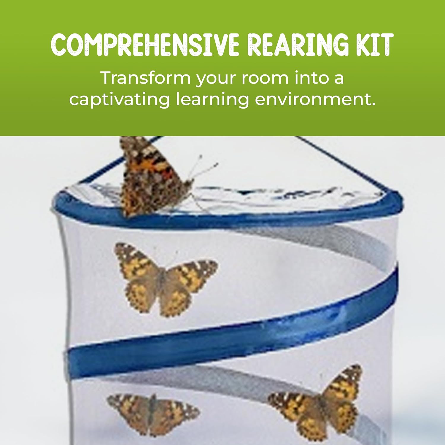 - Easy & User Friendly: The included rearing supplies make this kit simple to use. Your butterfly kit with live caterpillars includes 32 small cups, a transfer brush, food, mister, butterfly feeder, sugar, eye dropper, easy instructions, and a life cycle coloring page.