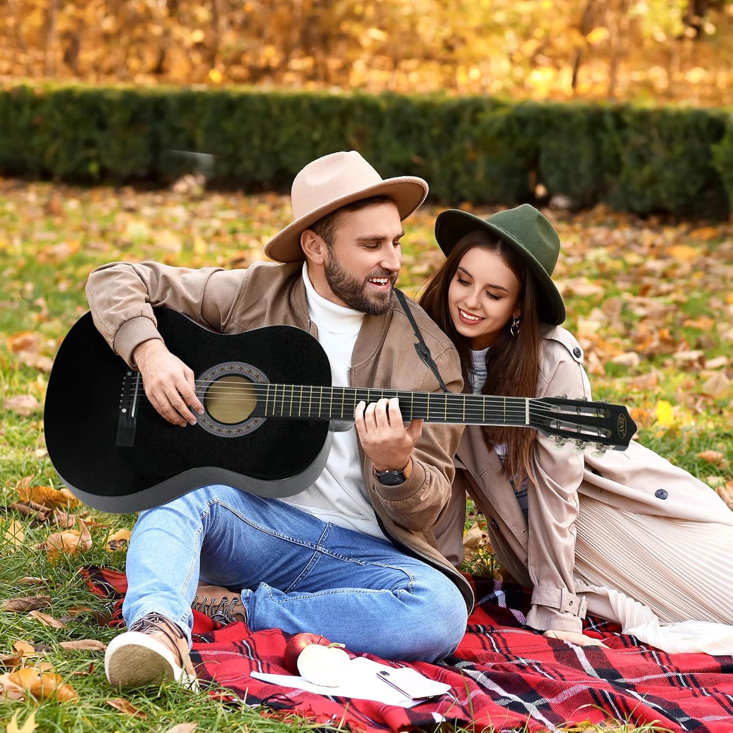 ZENY Beginners 38 inch Acoustic Guitar Package Kit for Right-handed Starters Music Lovers w/ Case, Strap, Pitch Pipe and Pick (Black)