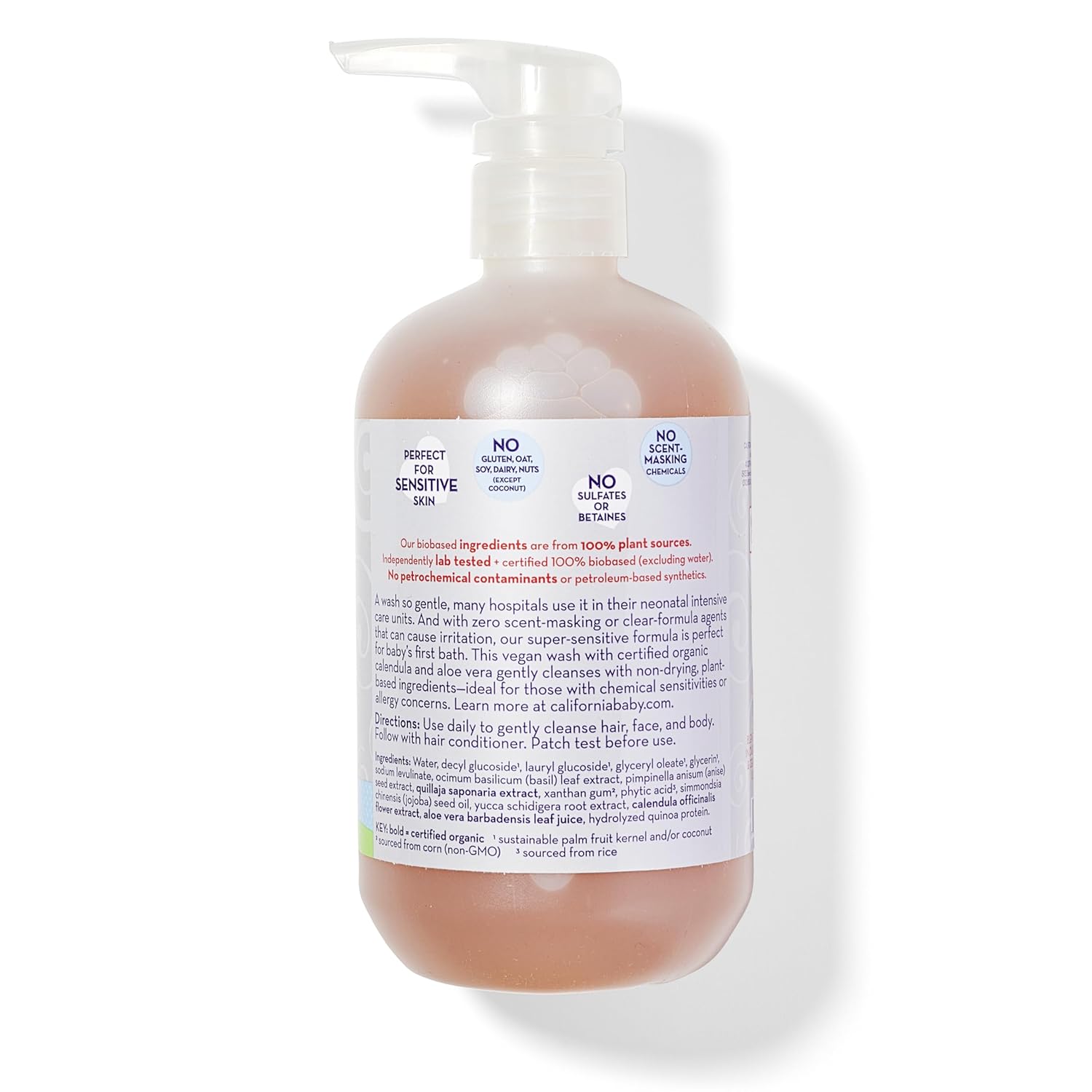 California Baby Super Sensitive Baby Shampoo and Body Wash | 100% Plant-Based | Gentle Fragrance Free Shampoo | Hypoallergenic | 19 Ounce (Pack of 2)