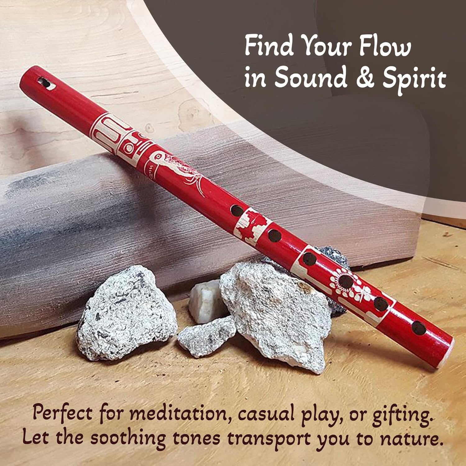 Mia Jewel Shop - Handmade Colored Bamboo Wooden Flute | Tribal Nature Pattern | Native Recorder for Beginners, Meditation & Music Lovers (Red)