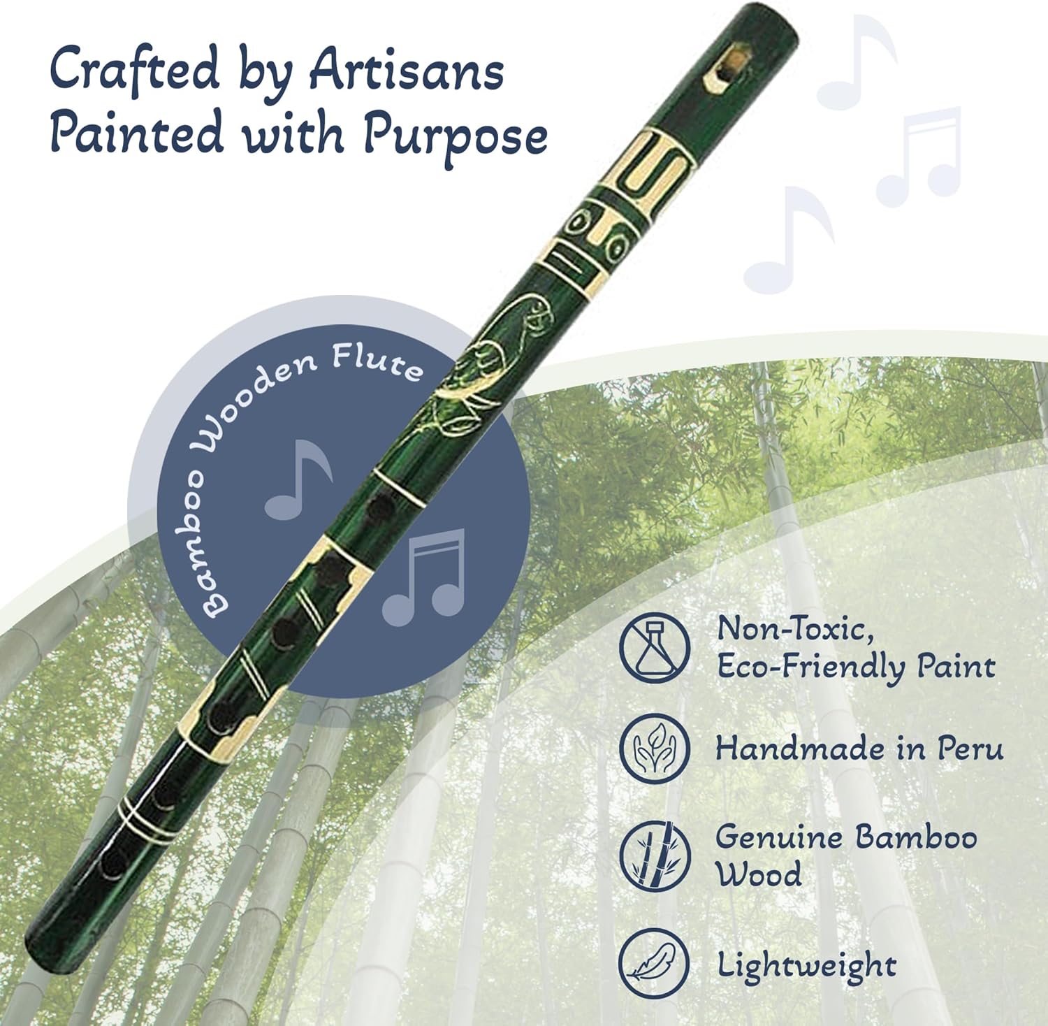 Mia Jewel Shop - Handmade Colored Bamboo Wooden Flute | Tribal Nature Pattern | Native Recorder for Beginners, Meditation & Music Lovers (Green)