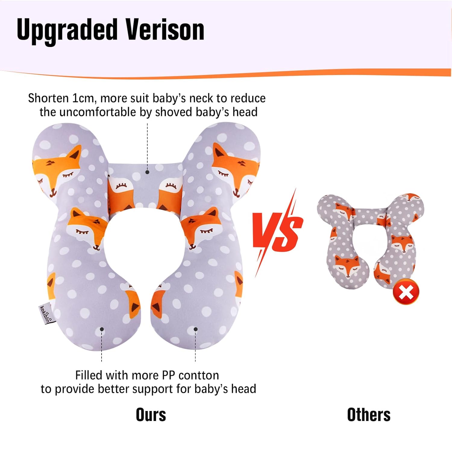 - U Shaped Design(upgraded): baby support pillow filled with more PP cotton for the two side which can provide a better support for baby’s head, and Reduce width of the neck support part which may not push baby's head to feel uncomfortable