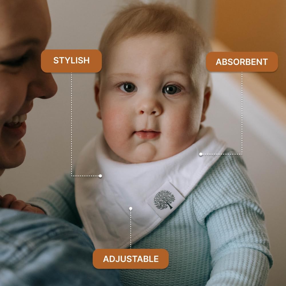 - SUPER SOFT, ABSORBENT & MESS-READY β Made with 100% cotton on the front and soft, absorbent polyester backing, these bibs catch drool, spit-up, and food messes, keeping baby dry, comfortable, and stylish all day long.