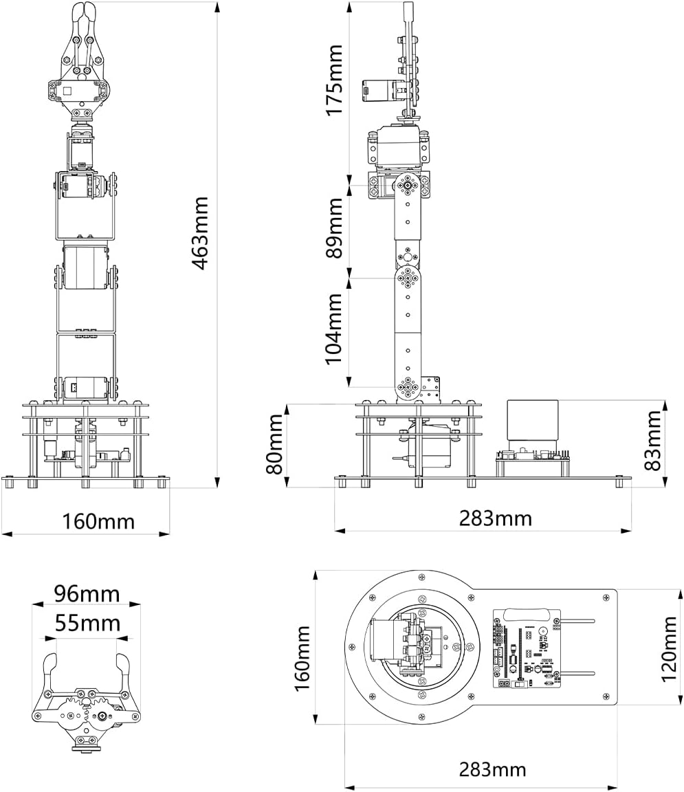 - Premium Structure Design: The robot arm is constructed from exquisite metal bracket. The base is fortified with high-torque servos and industrial-grade bearings, guaranteeing exceptional stability.