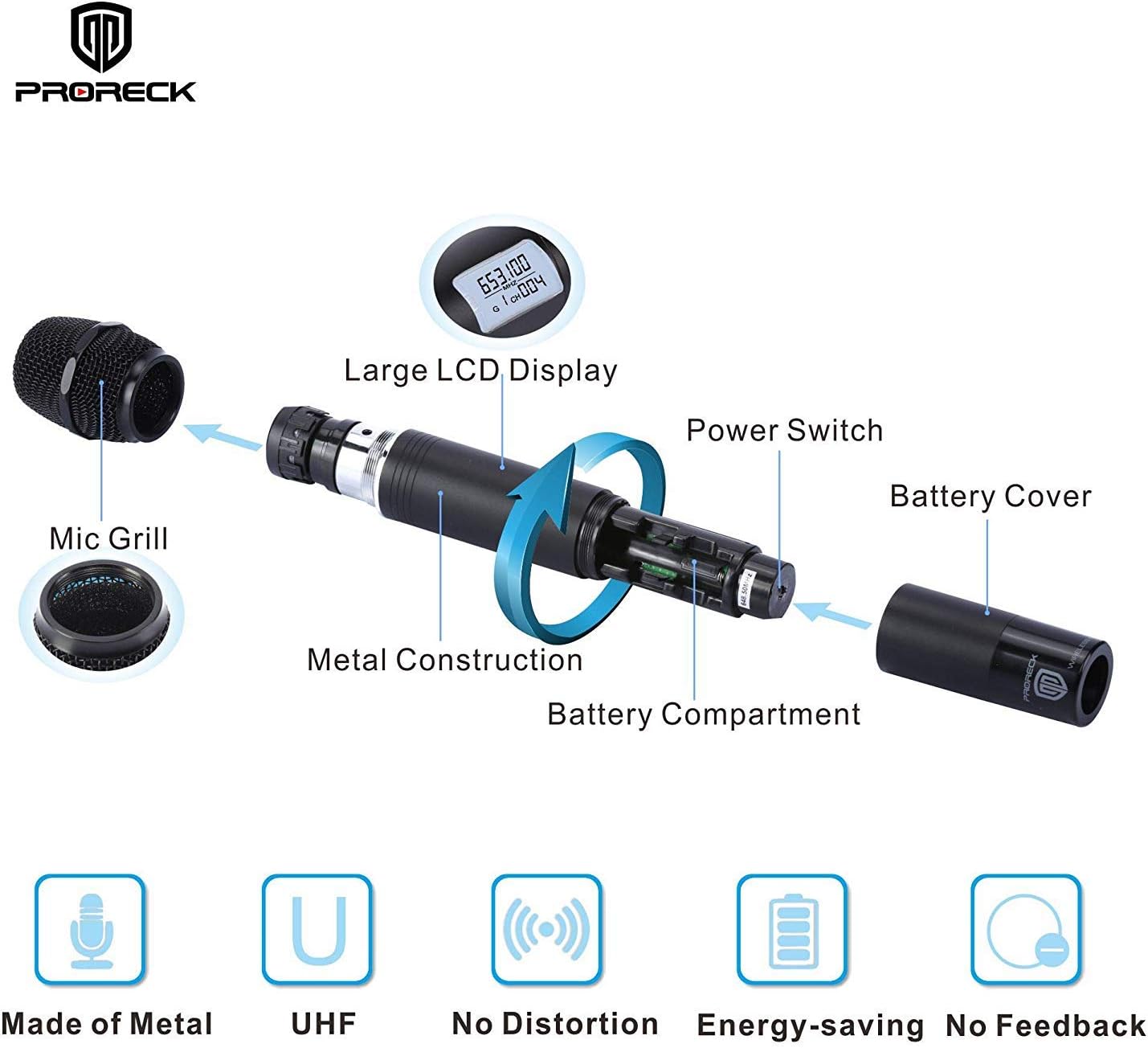 - Professional UHF microphone system delivers great audio signal and is much more stable than the VHF; Work great with all PRORECK speakers; Six XLR outputs & one 1/4β(6.35mm) mix output to connect this versatile system to most amplifiers/mixers/powered speaker on market;