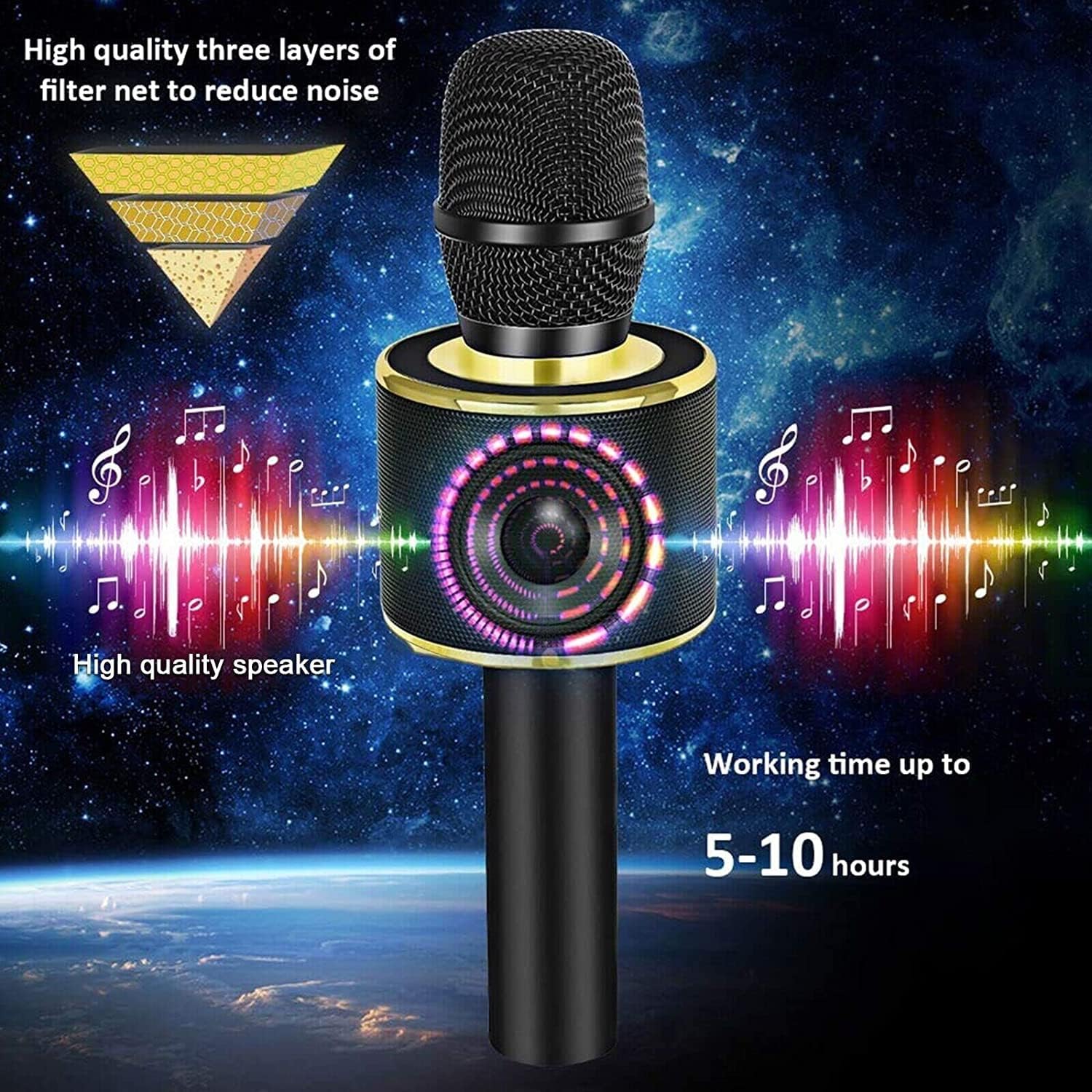 BONAOK Wireless Bluetooth Karaoke Microphone, 3-in-1 Portable Handheld Mic Speaker Machine for All Smartphones, Gifts to Girls Boys Kids Adults All Age Q37(Black Gold)