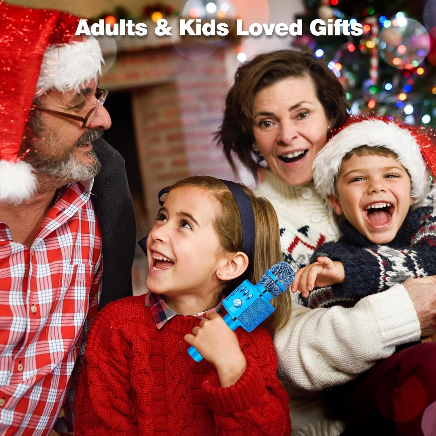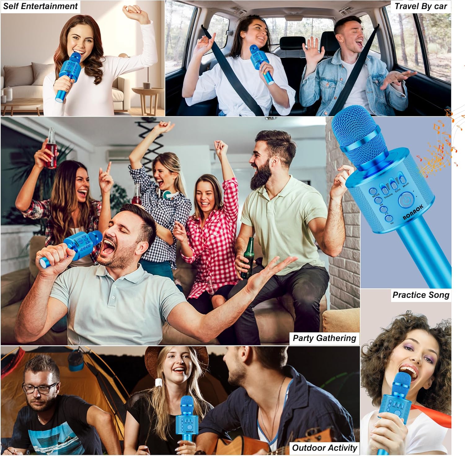BONAOK Wireless Bluetooth Karaoke Microphone,3-in-1 Portable Handheld Karaoke Mic Speaker Machine Birthday Home Party for PC or All Smartphone (Q37 Blue)