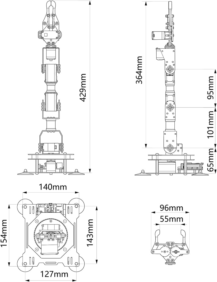 - Premium Structure Design: The robot arm is constructed from an exquisite aluminum alloy bracket. The base is fortified with high-torque servos and industrial-grade bearings, guaranteeing exceptional stability.