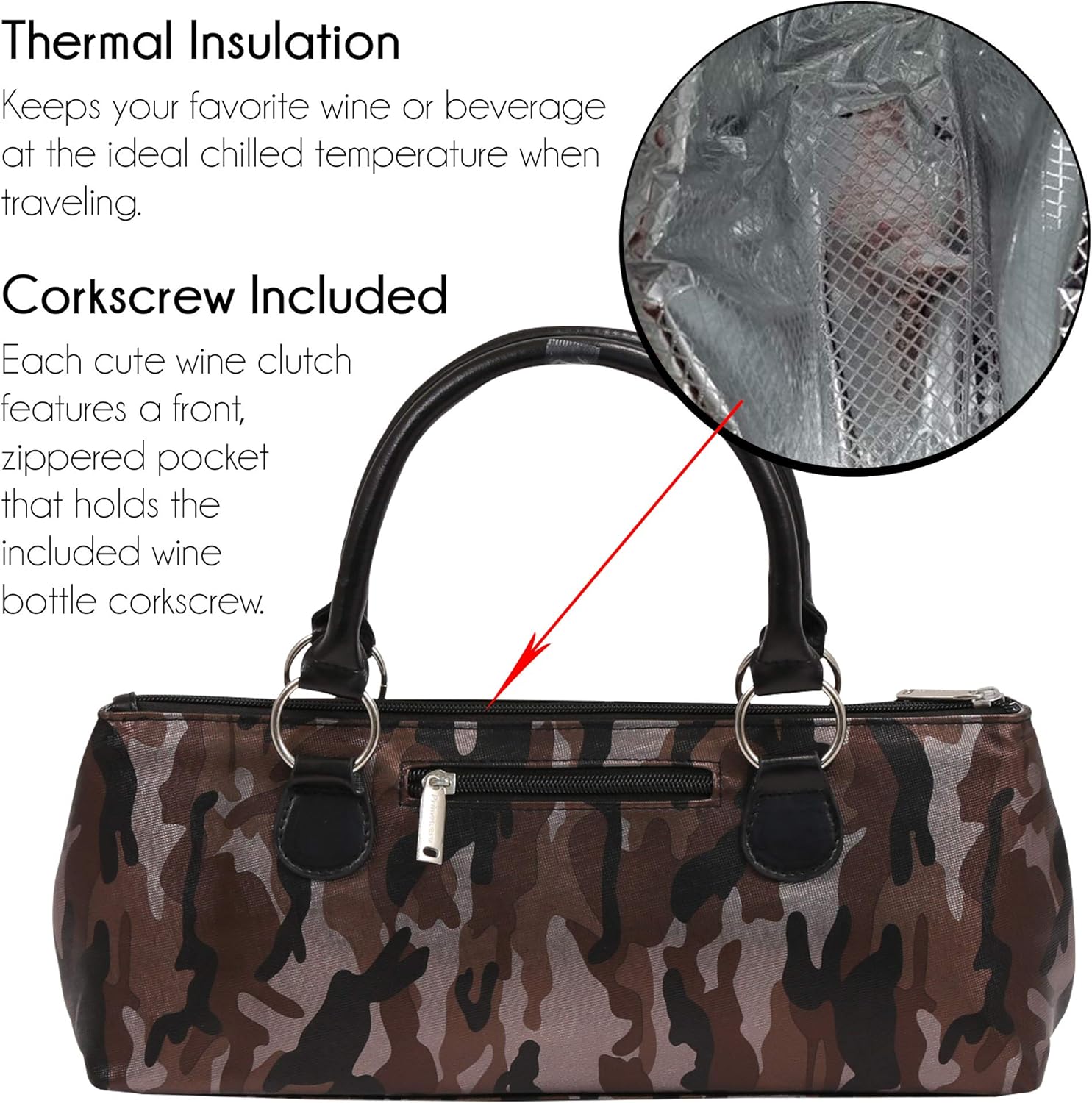 Wine Clutch Bag Thermal Insulated Wine Carrier Tote Holds Red and White Wine 750 Milliliter Bottle Includes Portable Waiter Style Corkscrew