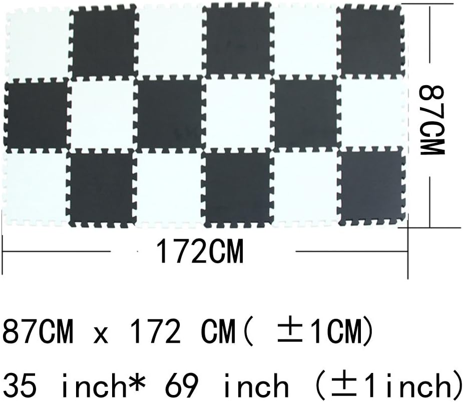 - ☺ Play Mat Size: the size of one piece:30 x 30 x 1CM (11.8 x 11.8 x 0.4 inches); 18 pieces mats cover area: 172cm x 87cm (±1CM) / 69" x 35"(±1inch)
