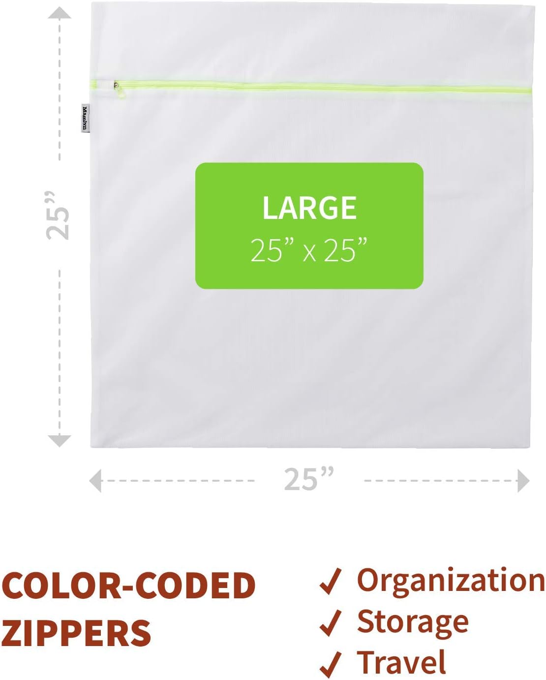 - DIMENSIONS & FEATURES: With small (15" x 12"), medium (20" x 16"), and large (25" x 25") sizes to choose from, you'll find a set or single bag suitable for you. Made of lightweight 100% polyester, these mesh bags are dryer safe. The color-coded zippers also make them great for organizing.