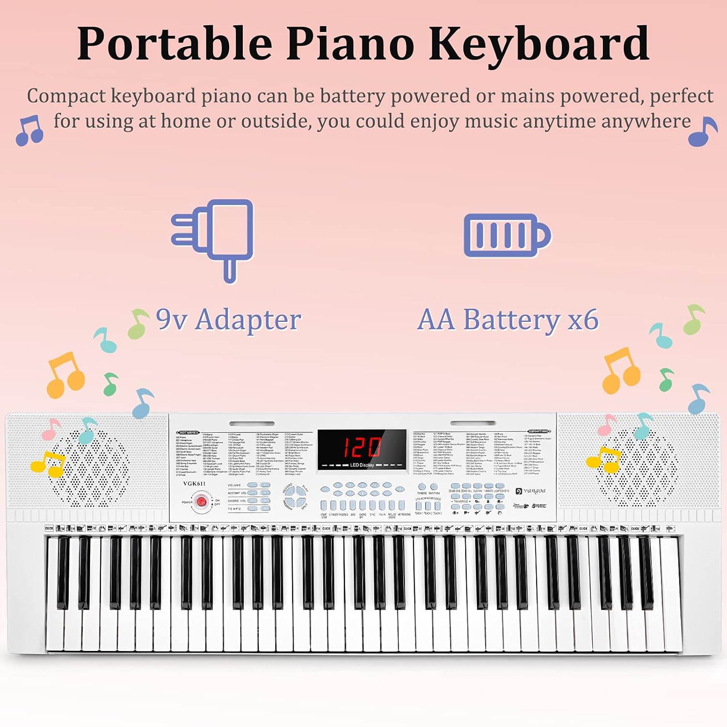 Vangoa VGK611 Electric Keyboard for Beginner, 61 Keys Portable Music Keyboard With Mini Lighted Keys, Electronic Piano for Kids, Boy, Girl, White