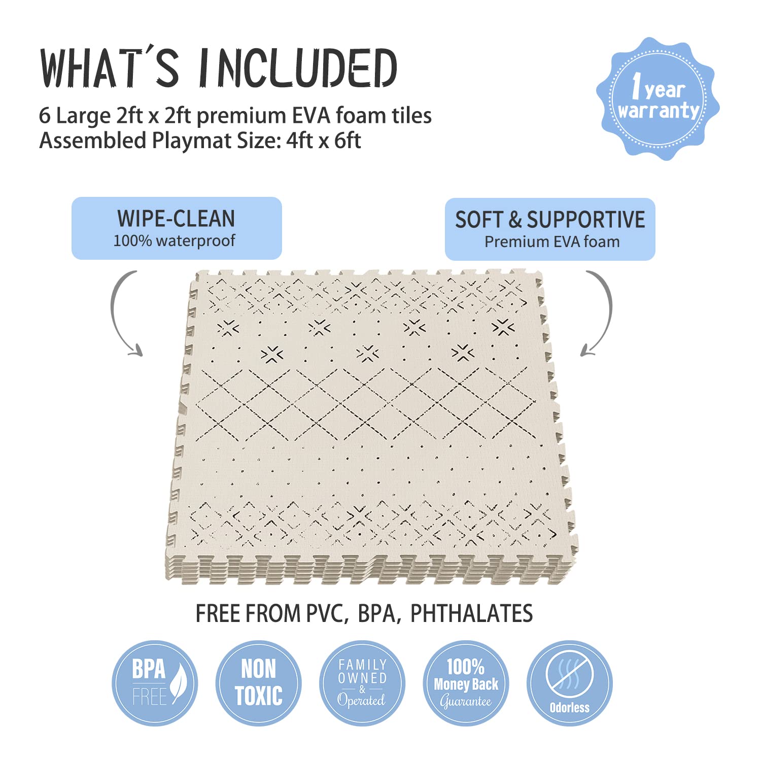 Yay Mats Stylish Extra Large Baby Play Mat. Soft, Thick, Non-Toxic Foam Covers 6 ft x 4 ft. Expandable Tiles with Edges Infants and Kids Playmat Tummy Time Mat (Carter Mudcloth Tan)