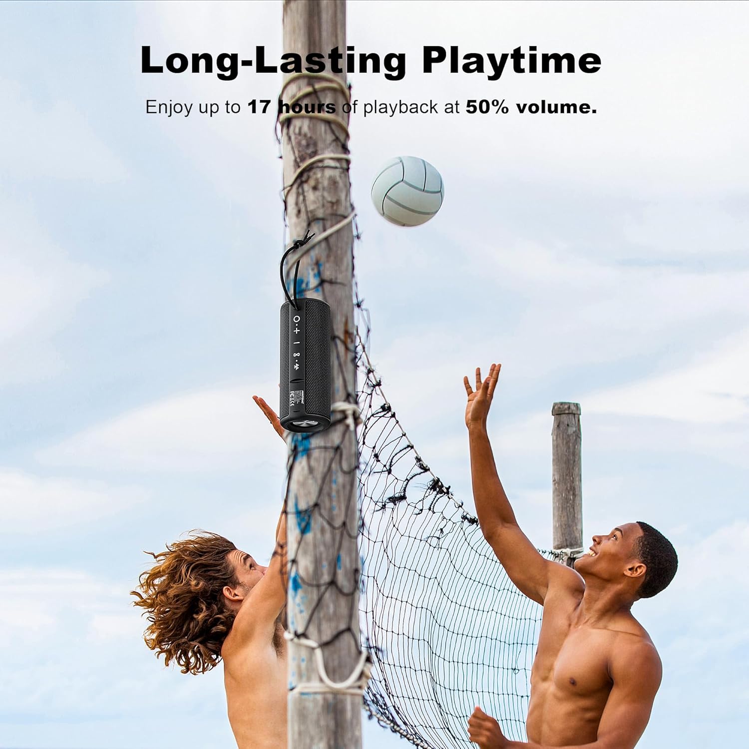 - Rugged & Anti-Slip Design – The mesh fabric exterior ensures a secure grip, even on the go. Soft silicone end caps absorb shock from drops, making it more durable than hard plastic speakers. Perfect for outdoor adventures—camping, beach trips, poolside, golf, and more.
