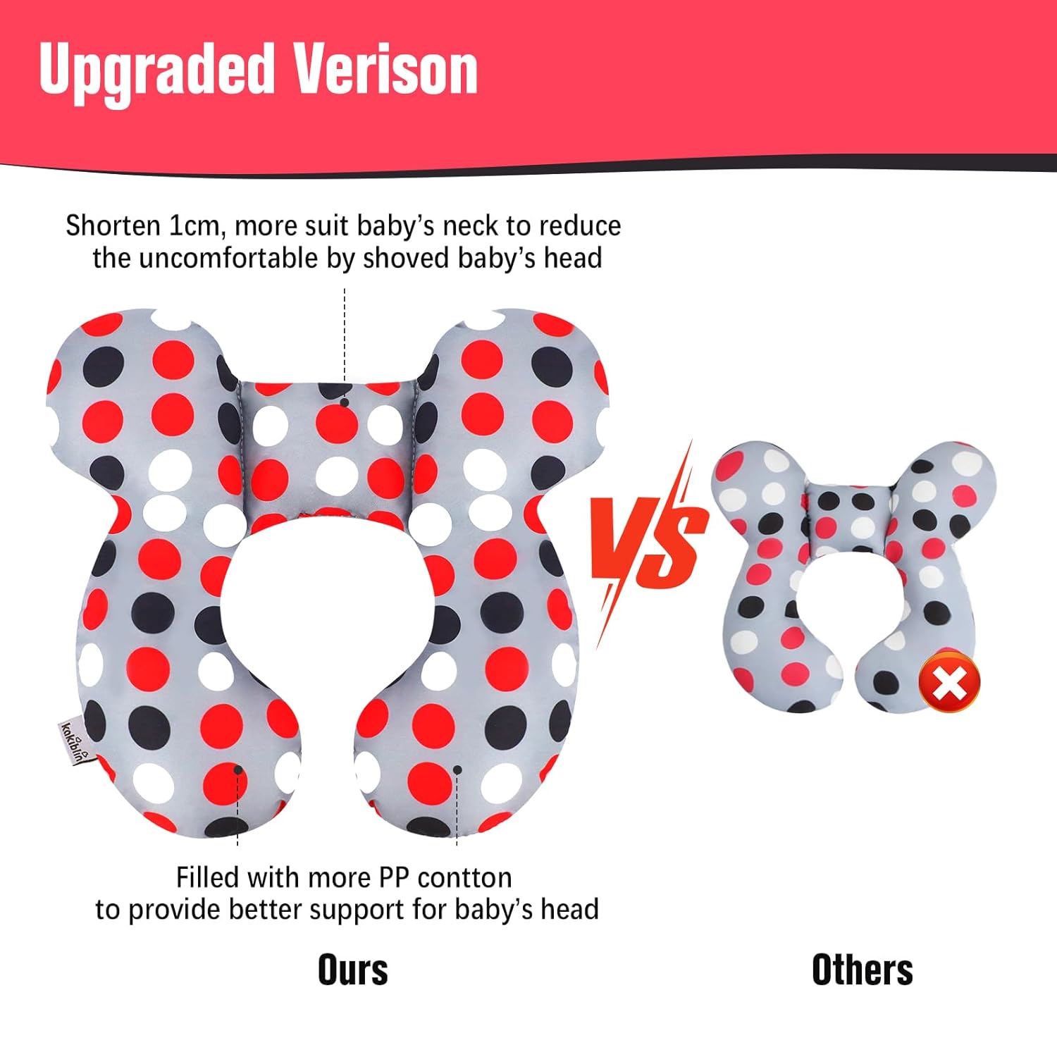 - U Shaped Design(upgraded): baby support pillow filled with more PP cotton for the two side which can provide a better support for baby’s head, and Reduce width of the neck support part which may not push baby's head to feel uncomfortable