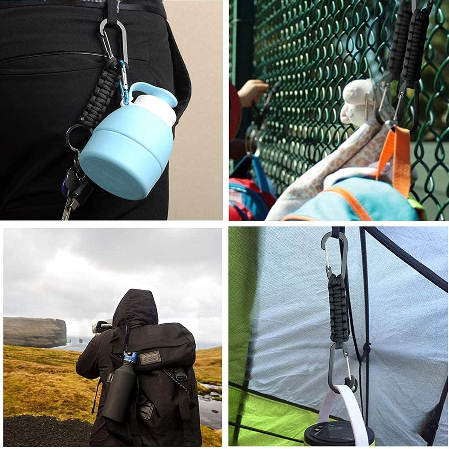 - Multi-functional and Practical: Variety of uses for you in indoor or outdoor. It can be used to hanging your clothes, water bottles, handbag or backpacks, key, car key, shopping bags, flashlight, id card holder, USB driver, umbrella, toiletry bags, key tags, survival hanger, waterproof bag, luggage, keychain organizer, keychain holder, keychain gadget. It is also a useful stroller hook or stroller hanger for baby care belongings.