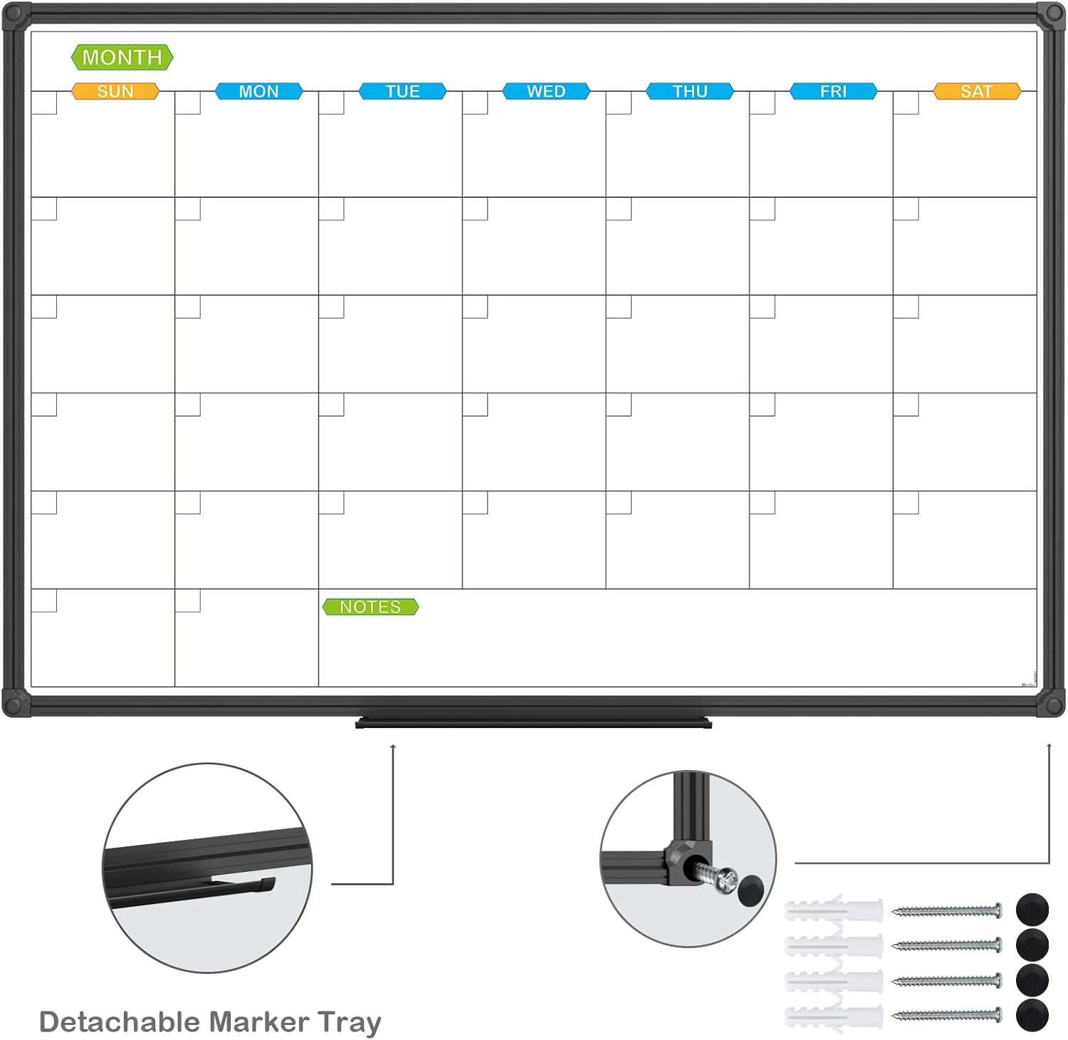 JILoffice Dry Erase Calendar Whiteboard - Magnetic White Board Calendar Monthly 36 X 24 Inch, Black Aluminum Frame Wall Mounted Board for Office Home and School