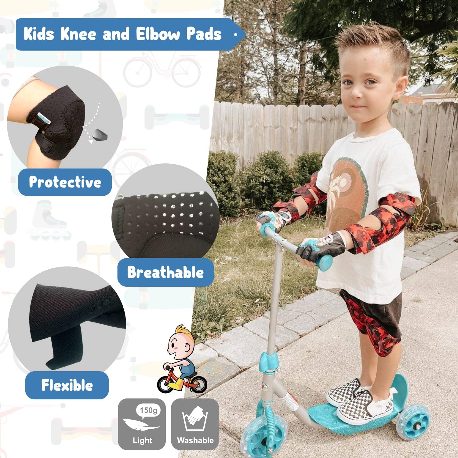 Soft-Style Kids Knee and Elbow Pads with Bike Gloves, Flexible Impact-Resistant Gear for Ages 2-11, Designed for Balance Bikes, Roller-Skating, and Skateboarding