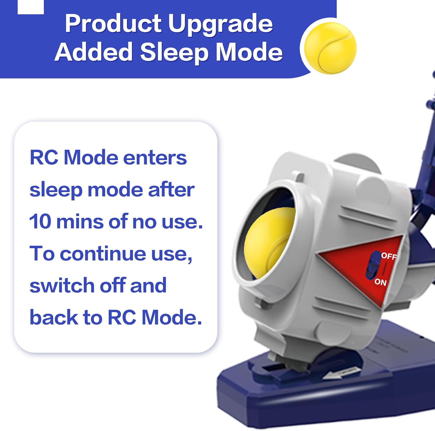 - RC and Auto Modes. This upgraded version of the original iPlay, iLearn pitching machine adds the addition of an RC (remote control) baseball bat. Switch device to ON for RC pitching, press red button on the bat to trigger a pitch. Note: Tennis racket is only available in auto mode. Balls pitch every 5S-7S in Auto mode.