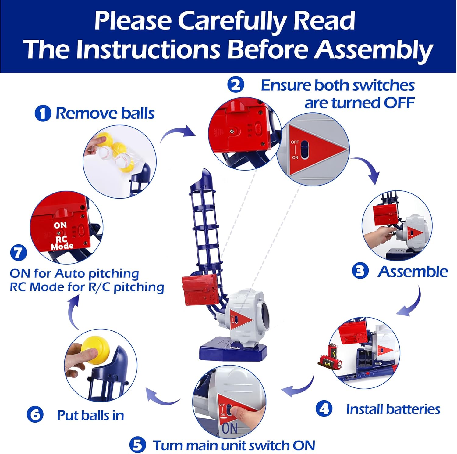 - SAFETY IS #1 - Warning: Children may get injured and/or have accidents when playing sports. Supervision recommended when using this toy. This 2-in-1 pitching machine set is designed with kids' safety in mind and is safe when used correctly.