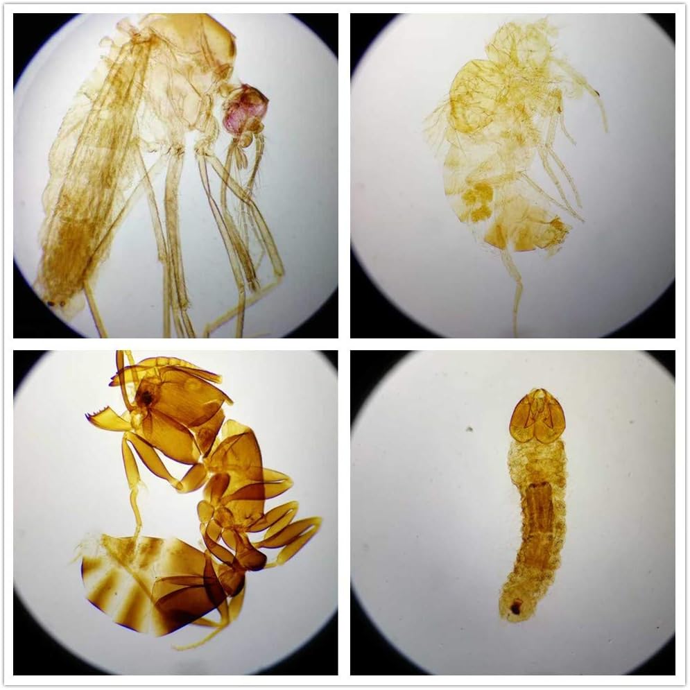 - 10PCS Insect Microscope Slides: Comes with 10 different types of insect specimens, Mosquito Larva/Drosophila Larva/Male Fruit Fly/Female Fruit Fly/Housefly Pupa/Ant/Cyclopidae/Mosquito/Aphid /Ant Silkworm