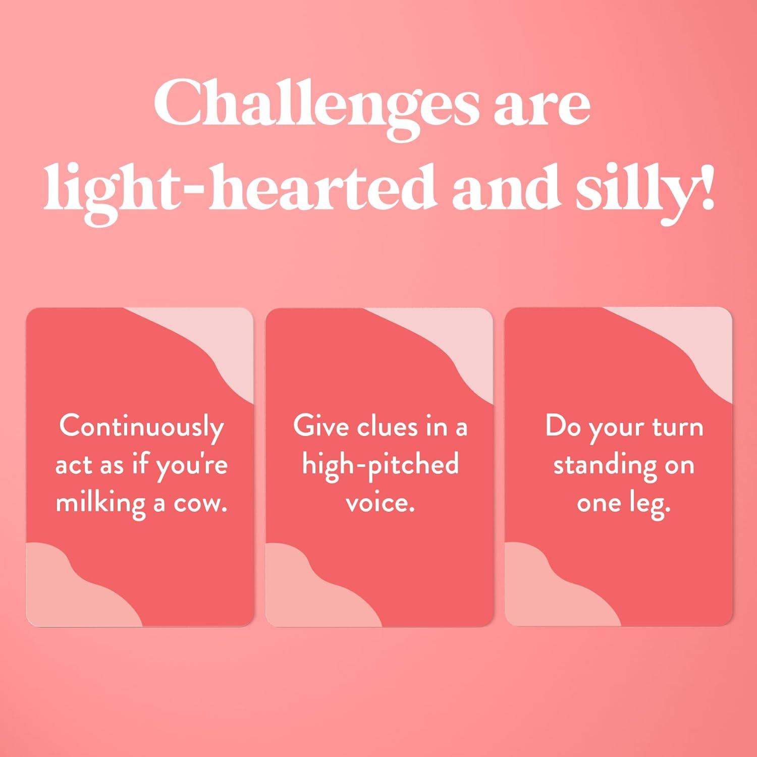 - π DO SILLY CHALLENGES: Slow down the other team by making them do addiitonal challenges while giving clues such as "talk in a British accent" or "act like you're milking a cow."