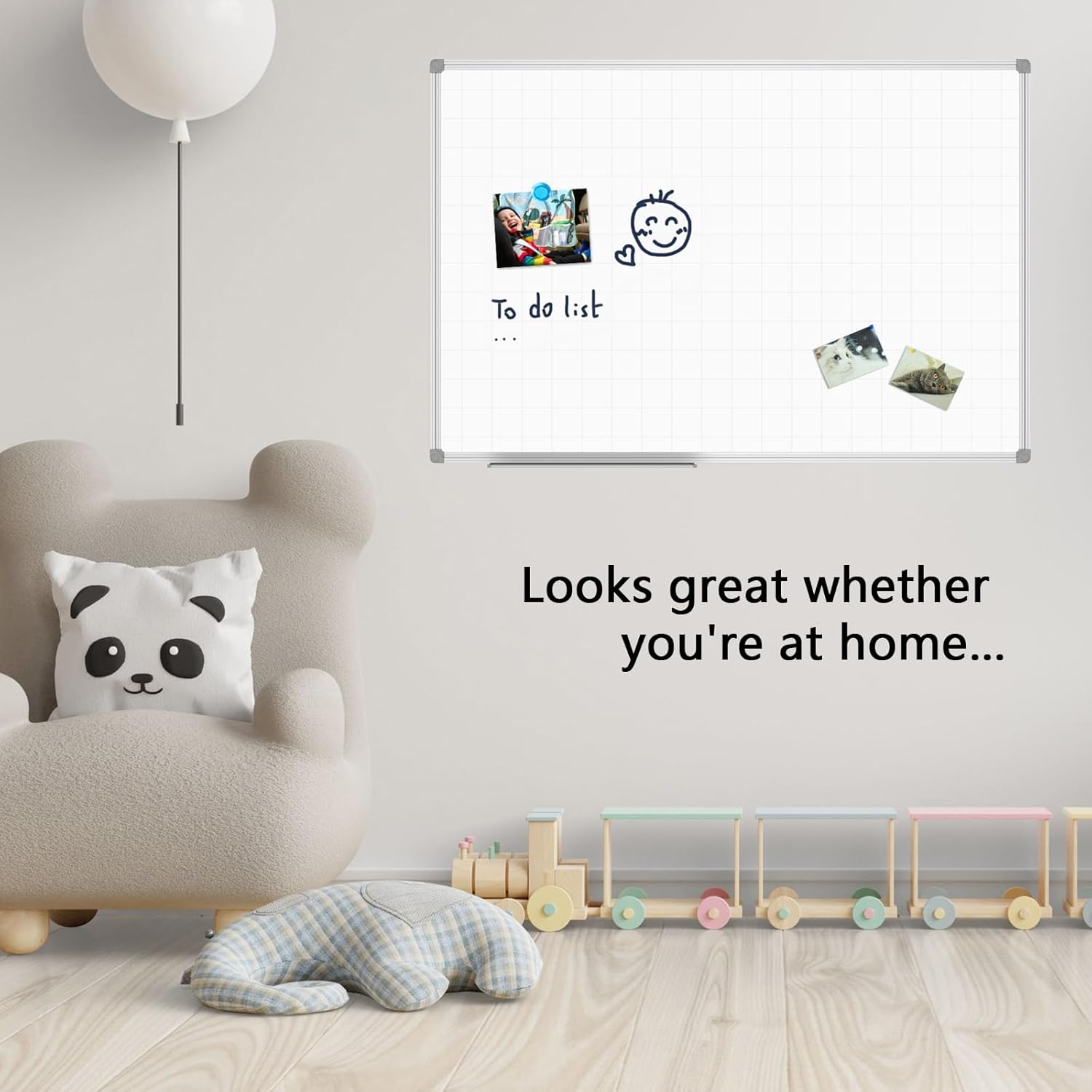 JILoffice Magnetic Dry Erase Planning Board, Grid Pattern White Board 48 x 36 Inch, Silver Aluminum Frame with Detachable Marker Tray for Office School and Home