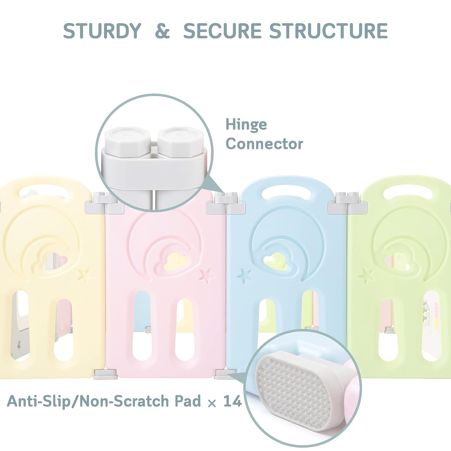 Fortella Cloud Castle Foldable Playpen, Baby Safety Play Yard with Whiteboard and Activity Wall, Indoors or Outdoors (Multicolor 14 Panel)