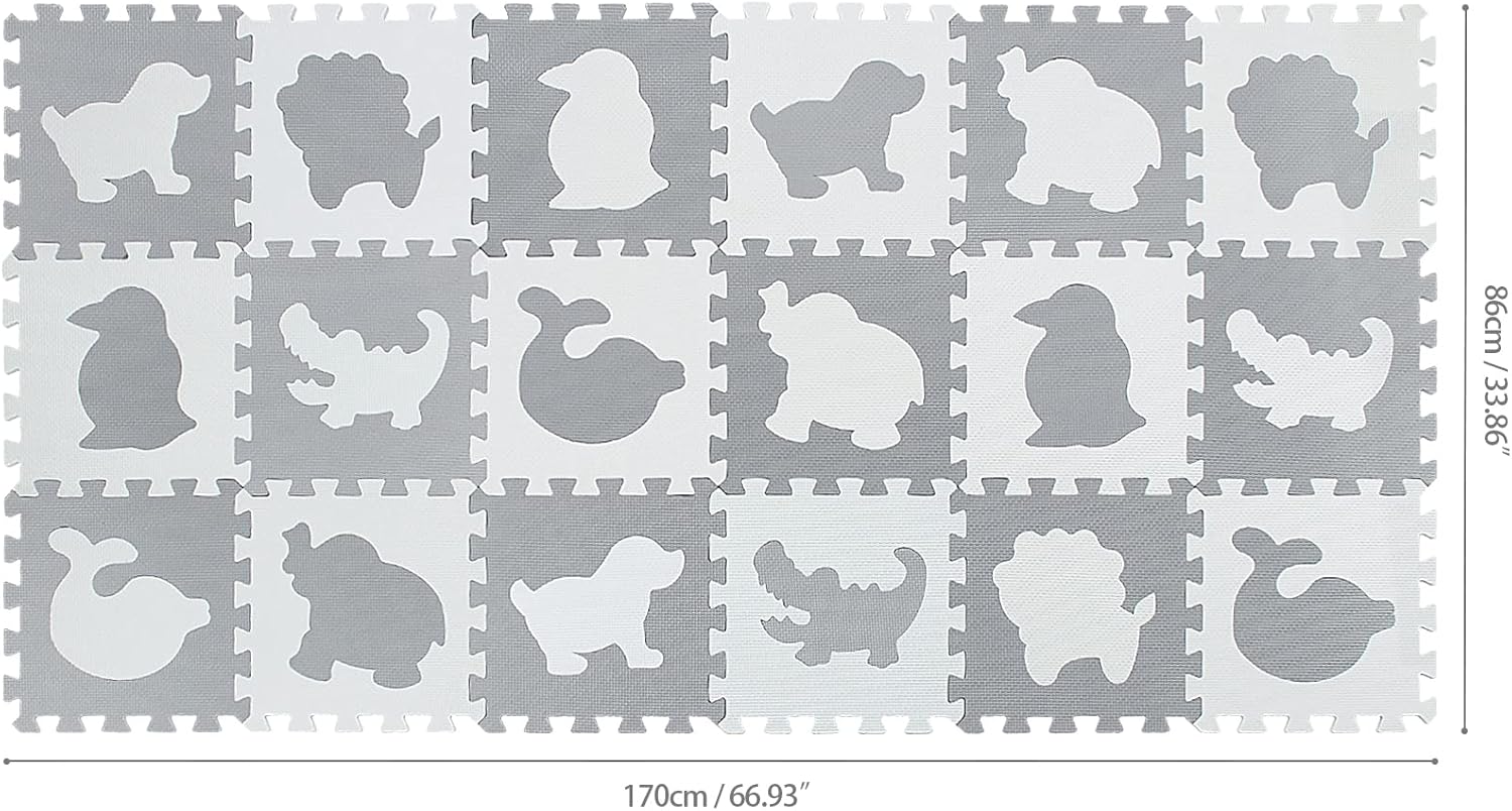 qqpp EVA 18 Tiles Baby Play Mat for Playing, Interlocking Foam Floor Mats for Tummy Time & Crawling, Flooring Tiles with Animals Puzzle for Kids. QP-51(AL) b18N