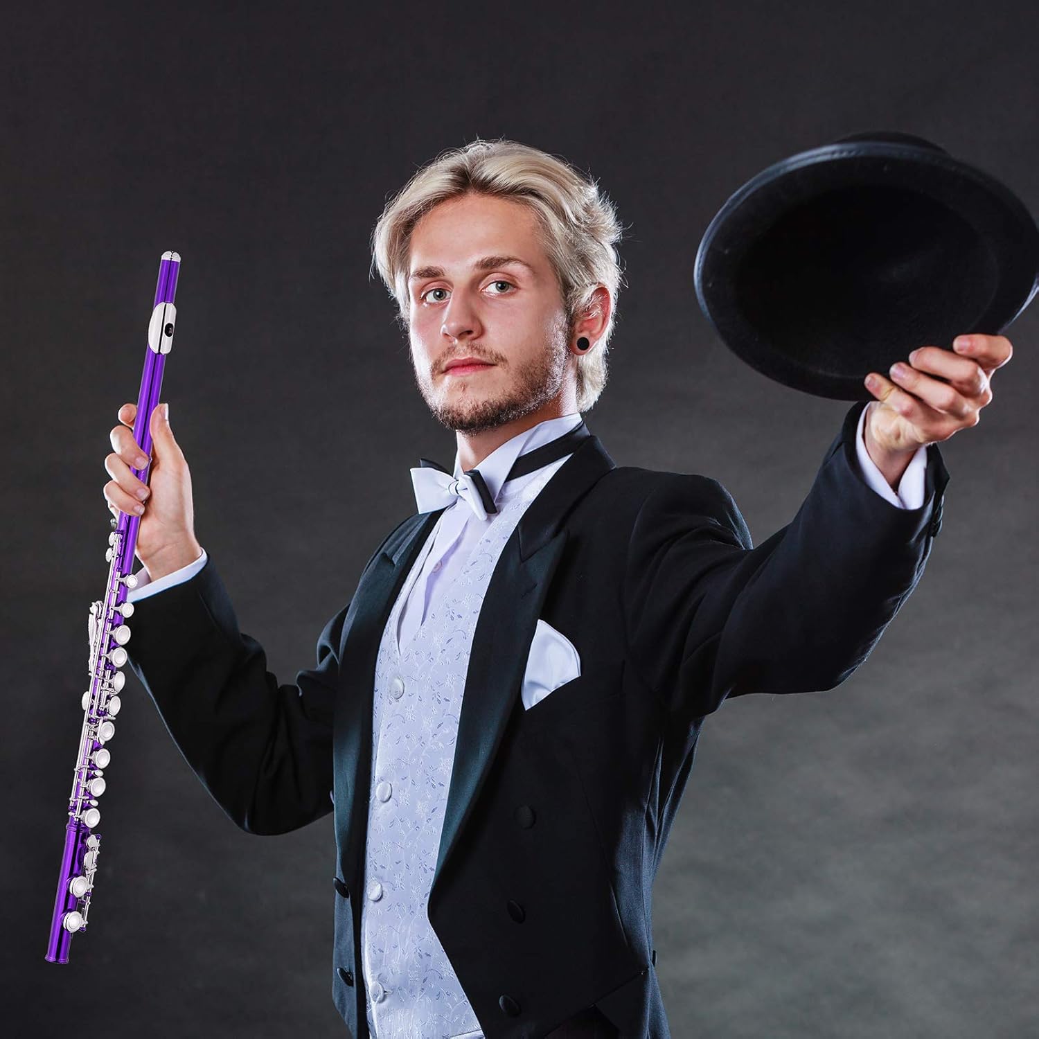 EASTROCK Closed Hole Flutes C 16 Key for Beginner, Kids, Student -Nickel Flute with Case Stand and Cleaning kit (Purple)