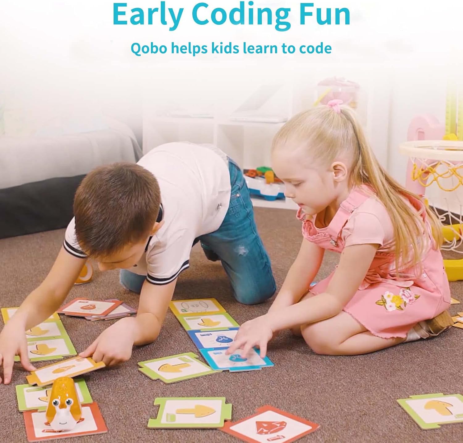 - Ready Right Out of The Box: Qobo is ready to code right out of the boxοΌ The set includes 27 fun coding cards that change the direction of the Qobo, the color of the lights, and make fun sounds like trains and police cars. In addition, there are many logic-filled coding cards for kids to piece together a variety of interesting paths. This STEM toys will have your child coding in minutes.