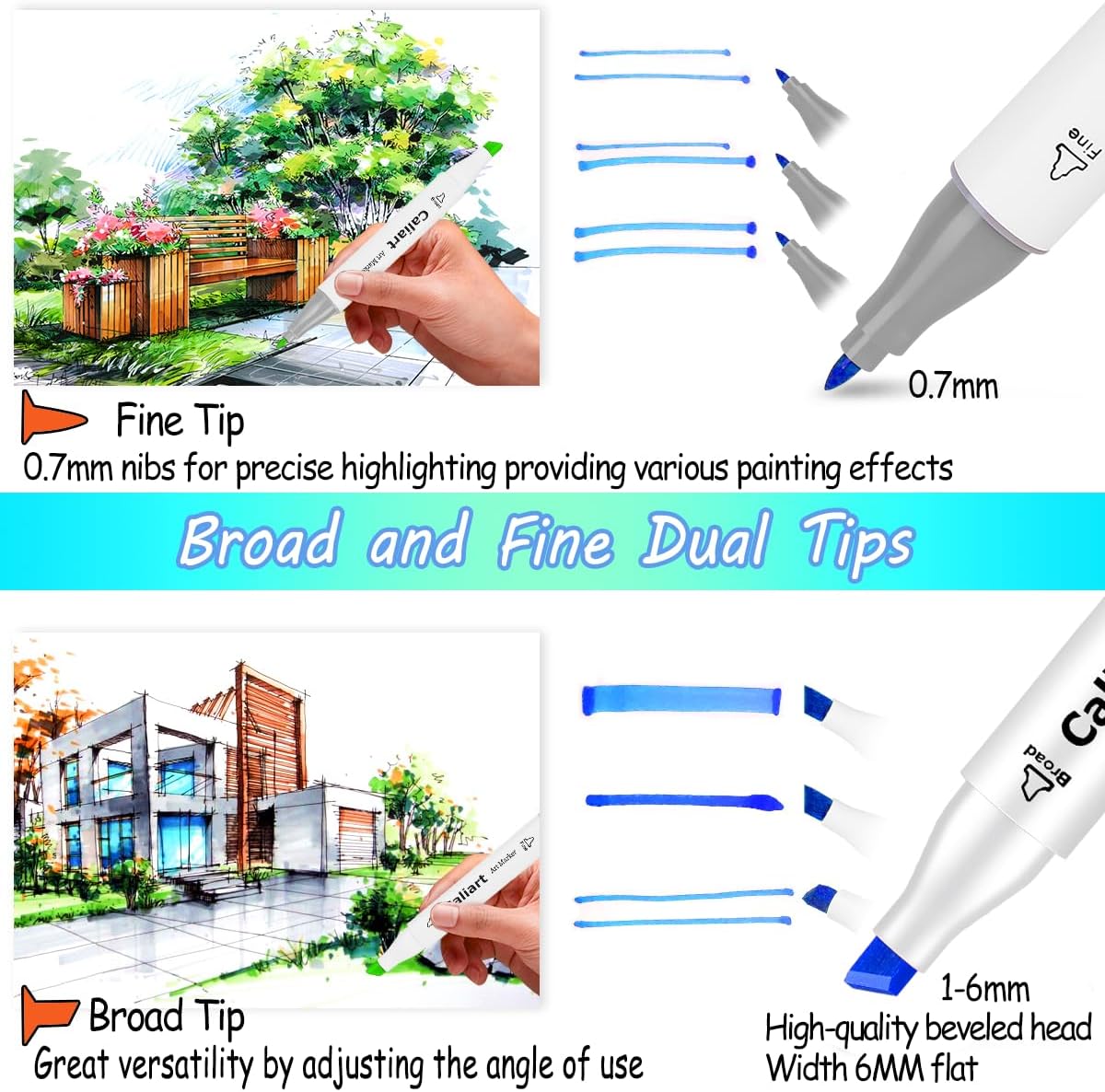 - 🎨 120 Vibrant Colors + 1 Free Blender. Valued artist markers set for adults, kids Coloring, artist sketching, illustration, drawing, calligraphy lettering beginners, highlighting, underlining, card making, architectural design, advertising rendering, landscape, and other forms of comic design etc. Great as art markers, sketch markers, drawing markers, permanent markers, paint markers, brush markers pens, alcohol based markers, alcohol markers brush tip, alcohol brush markers, brush marker set.