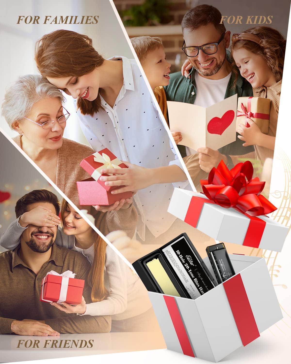 - ♬🎁 HIGH-QUALITY MATERIAL – Equipped with thickened brass base (1.0mm thick), this harmonica has stable resonance and reliable airtightness, with a pretty and durable silver cover plate. The non-toxic ABS combs are waterproof, high in hardness, and durable.