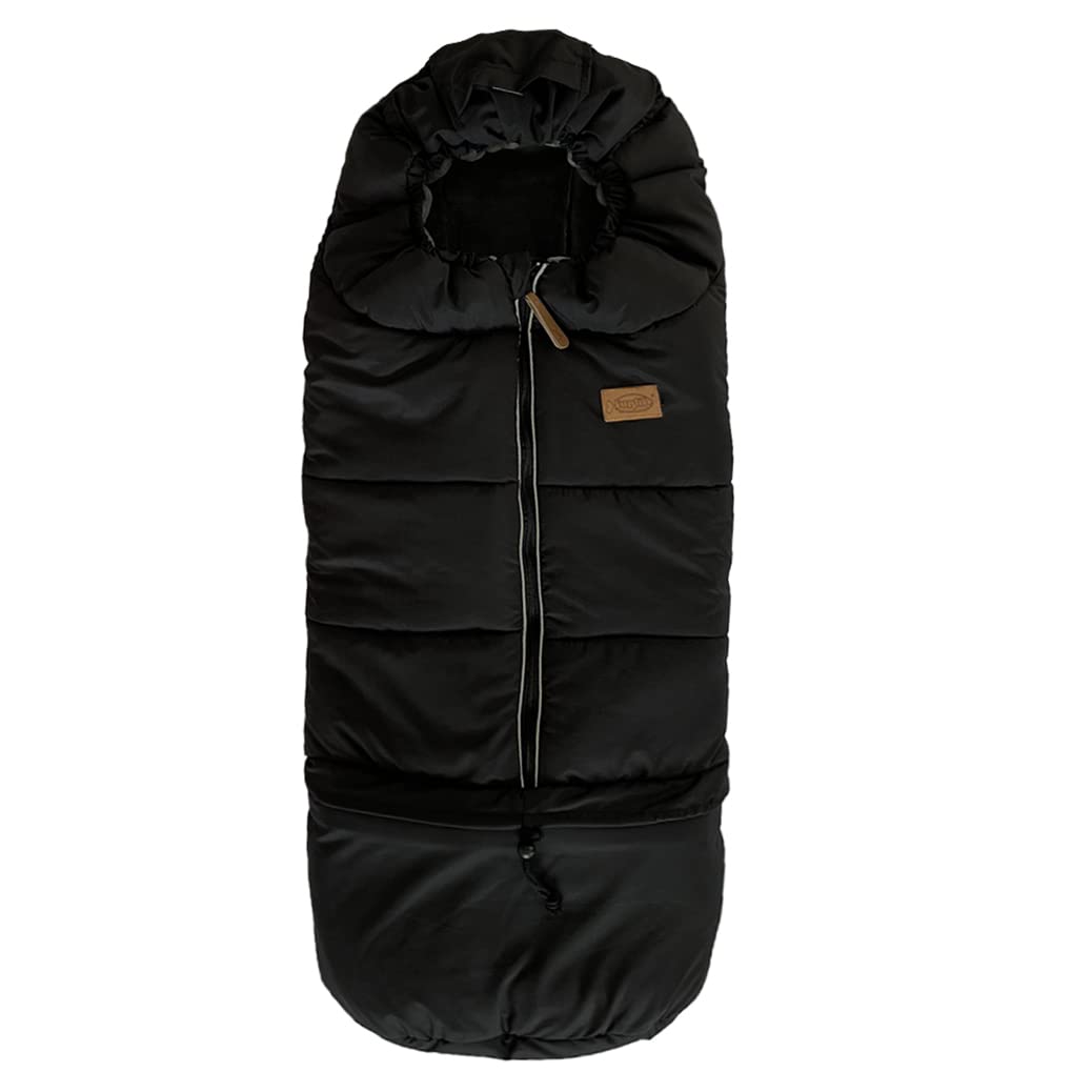 - ★NEAT FEATURES: @pull strings at back pocket to turn the head area into hoodie against harshest weather@ the string is hidden inside the convenient bag to prevent cords or plastic knobs hurt baby face @ Reflective strip keep your baby safe at night.@ extension section equipped with waterproof fabric easy to clean off dirt with damp cloth@Central open zipper easy for baby in and out.@ the bottom part can be use as storage bag to put footmuff away or use as diaper carrage bag.