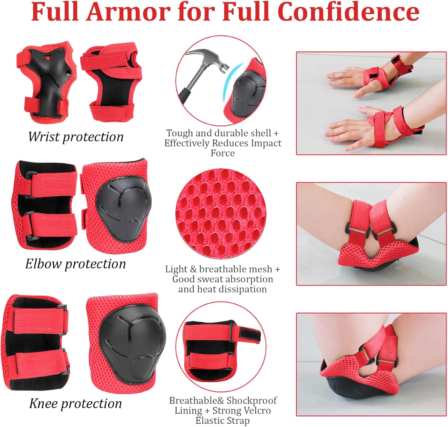 - 【7 pcs Kids Helmet Protective Gear】- Including 1 bike helmet, 2 x Elbow Pads, 2 x Knee Pads, 2 x Wrist Pads. Consist of anti-scratch extra hard ABS shell for hard protection, and adjustable straps ensure the protective gear will not shift. Provides your kids comfortable and safe, A great gift for toddler and kids age 3-8 years old