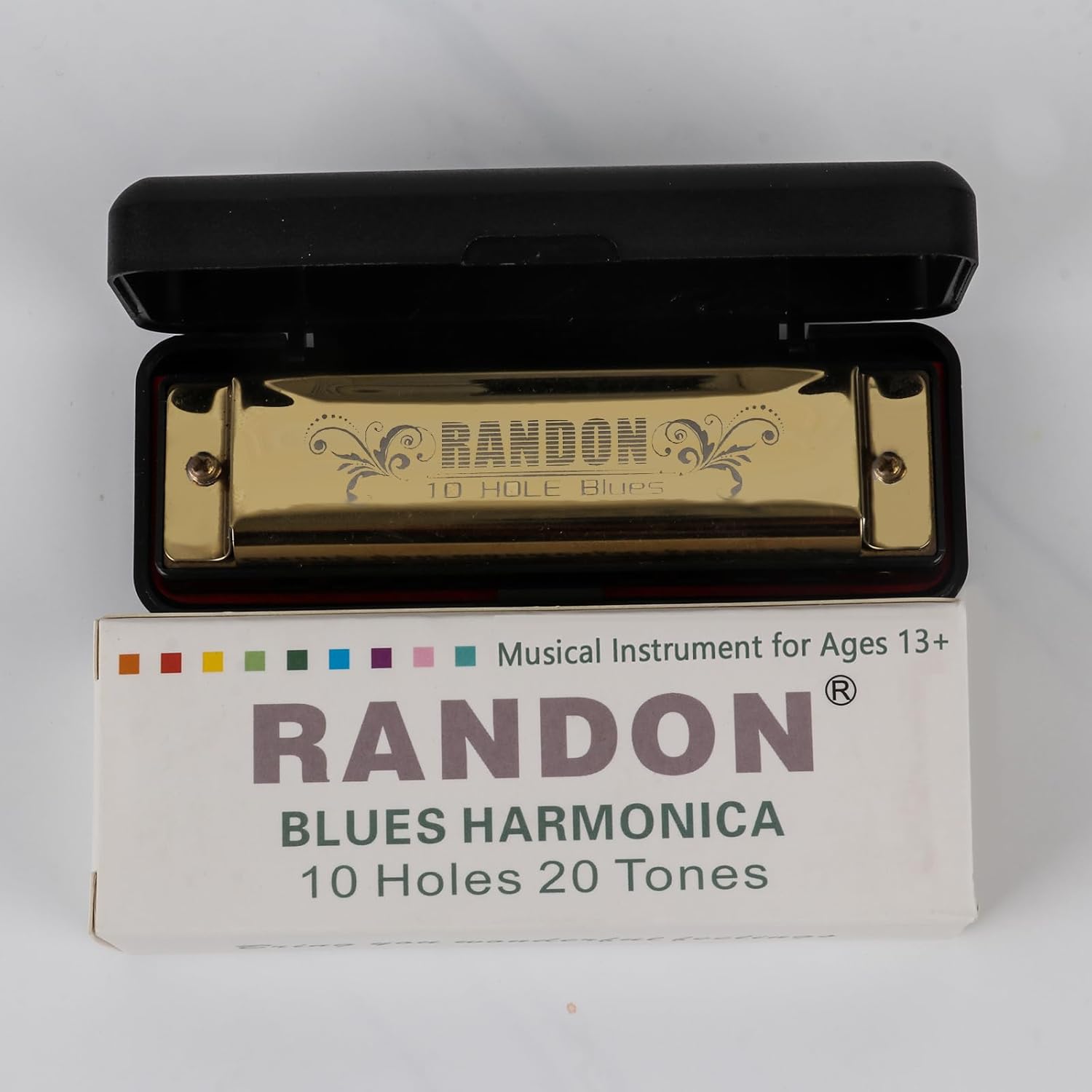 Randon Gold Harmonica Key of C, 10 Holes Diatonic Harmonicas for Adults/Kids/Beginners, Blues Harmonica as Gift, with Case, Clean Cloth and Manual