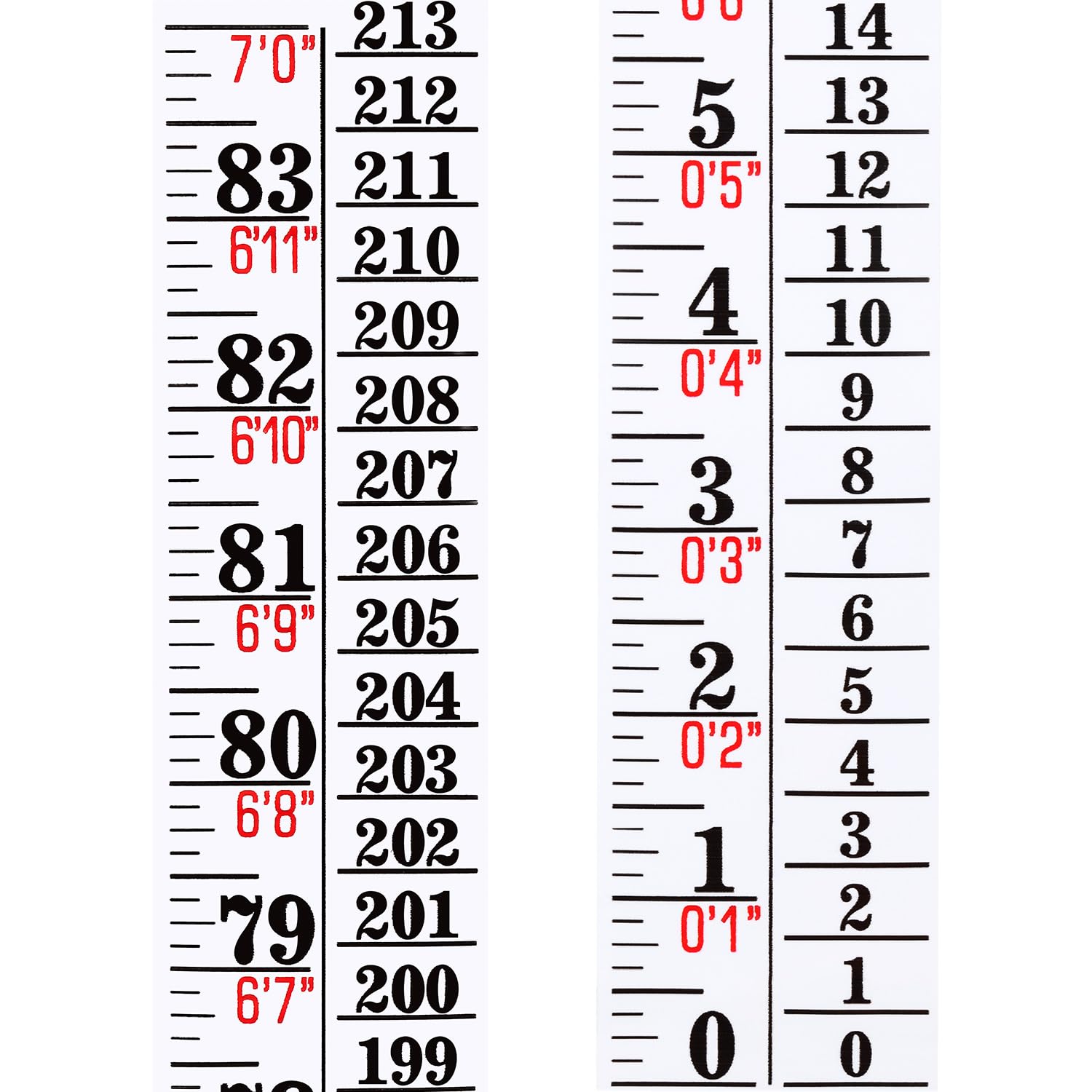 - Considerate design:the font is black and bright red to make the numbers more visible; 2 Kinds of measurement units can meet the measurement needs of different people; Compared with other height ruler, its width is large enough and can be cropped as needed