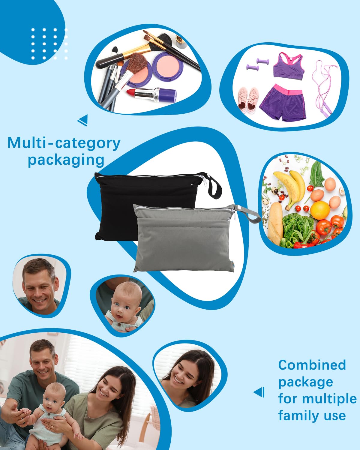 - Multi-Function: You will receive 2 pack wet bags. They are perfect for preserving cloth diapers and other baby products, and they can also be used as swimsuit bags, bikini bags, bathing suit bags, travel bags, gym bags, storage bags, cosmetic bags, handbags, wash bags, organizer bags, breast pump parts bags, even as picnic bags. They are ideal for baby shower gift, get yours today!