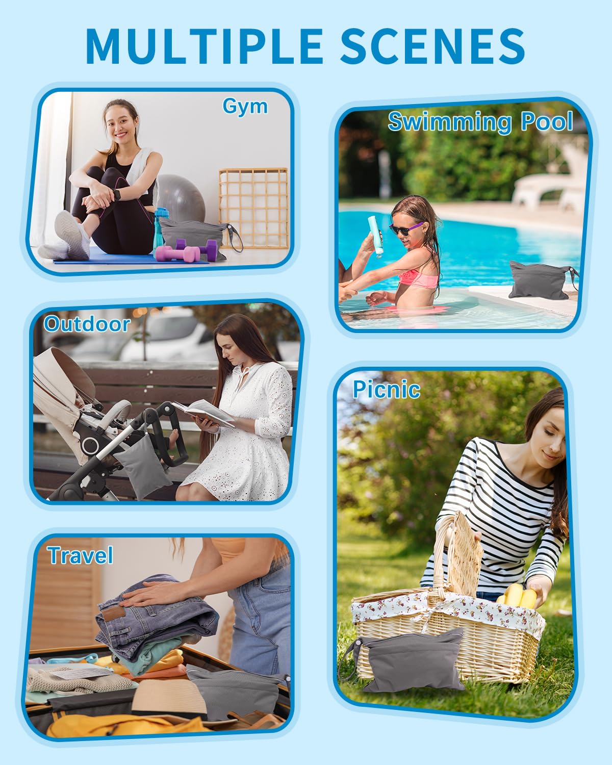 - Double-Pocket Design with Snap Handle: Each wet bag contains two pockets, which comes with two zip closures to ensure that nothing will drop out of the bag and better to keep the clean and dirty items separately. With the snap handle design, you can unbutton the haddle and easily hang the bag on the stroller or door knobs, towel rod ect. anywhere you want.