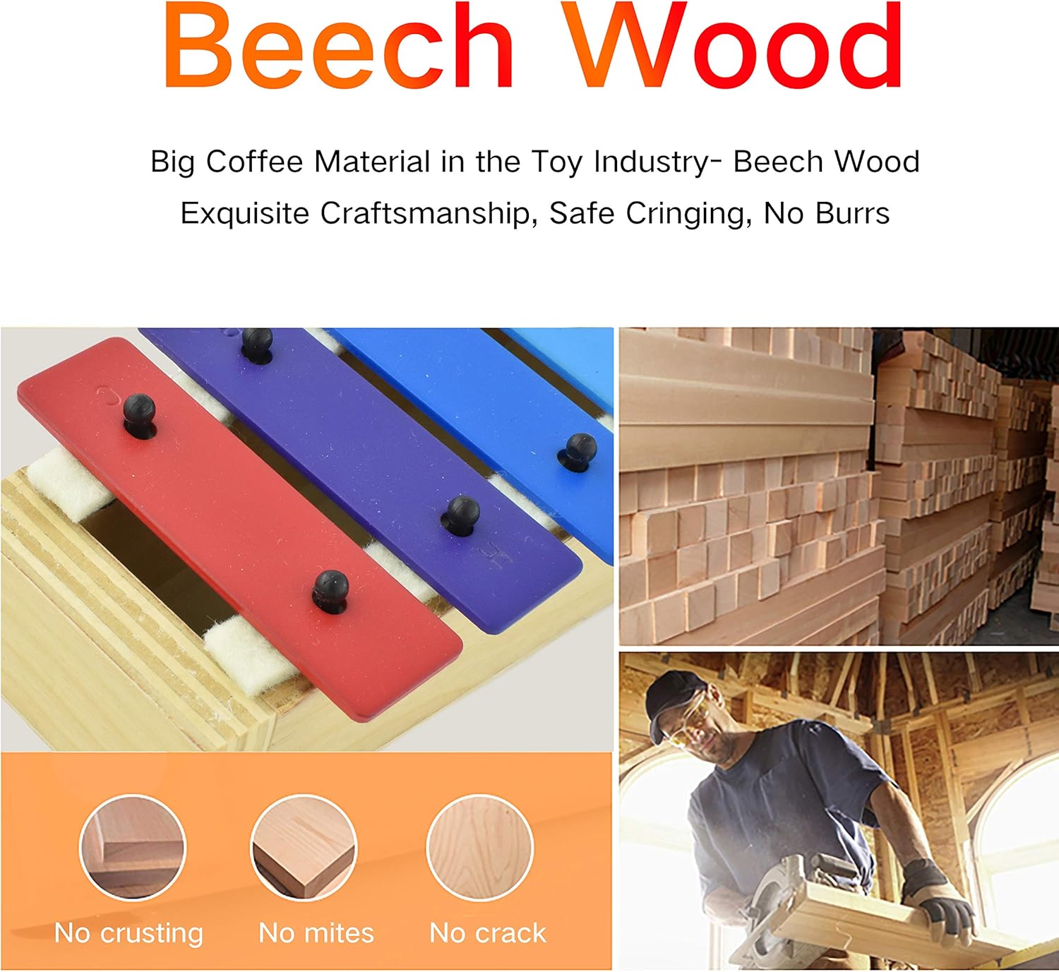 - Superb Sound: Eight precision tuned bars arranged in a C major scale provides an authentic musical experience and a pleasing soundscape. Each key in this toy xylophone matches their assigned notes for a great learning and musical experience. The wood mallets Idea for Kindergarten, school, family music education.